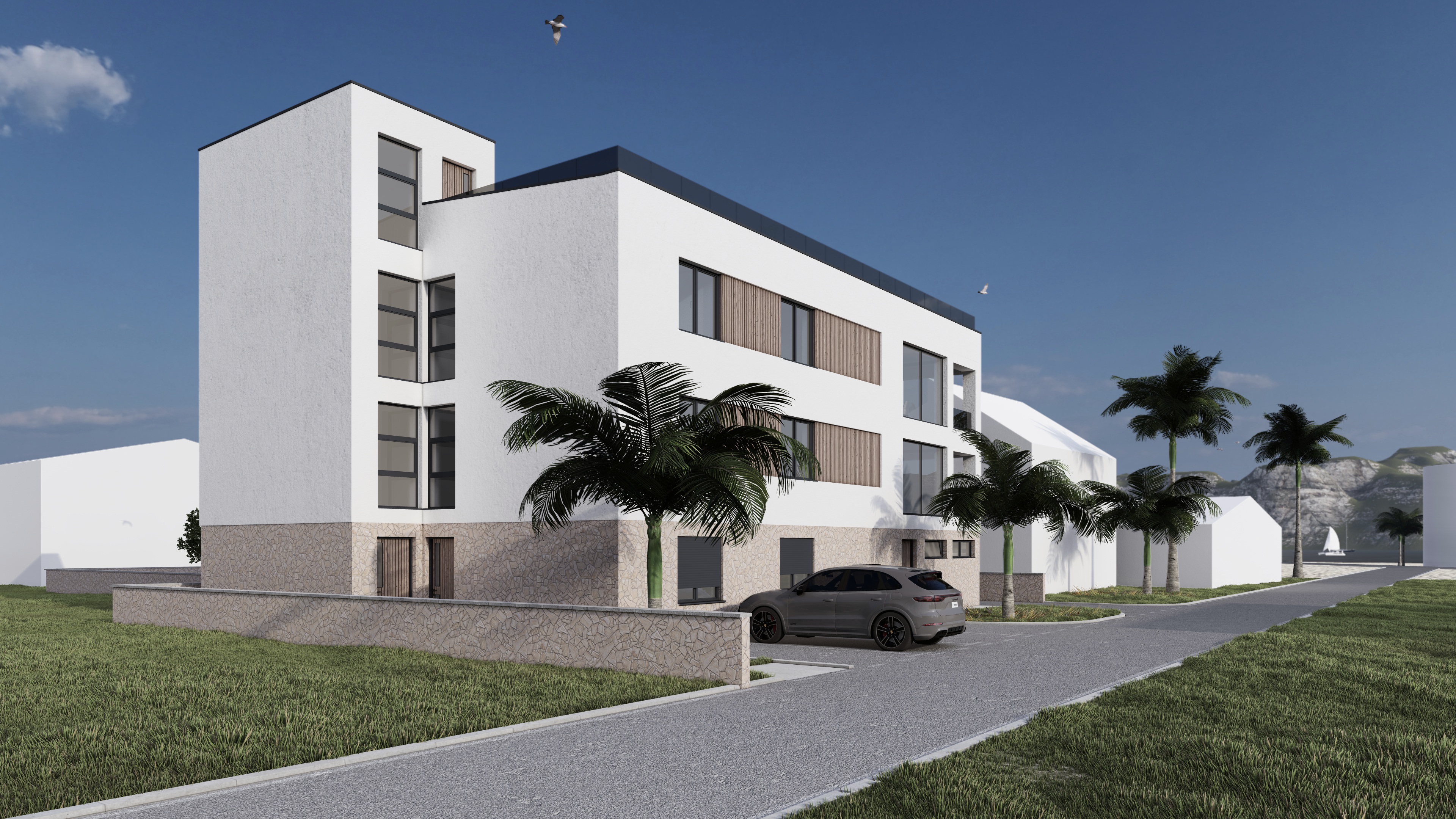 Naziv projekta: Višestambena zgrada Tip građevine: višestambena građevina i građevina pomoćne namjene – bazen i nadstrešnica Lokacija: Ninske Vodice, Zadarska županija, Hrvatska Bruto površina: 498,53 m2 Godina: 2022. Status projekta: građevinska dozvola