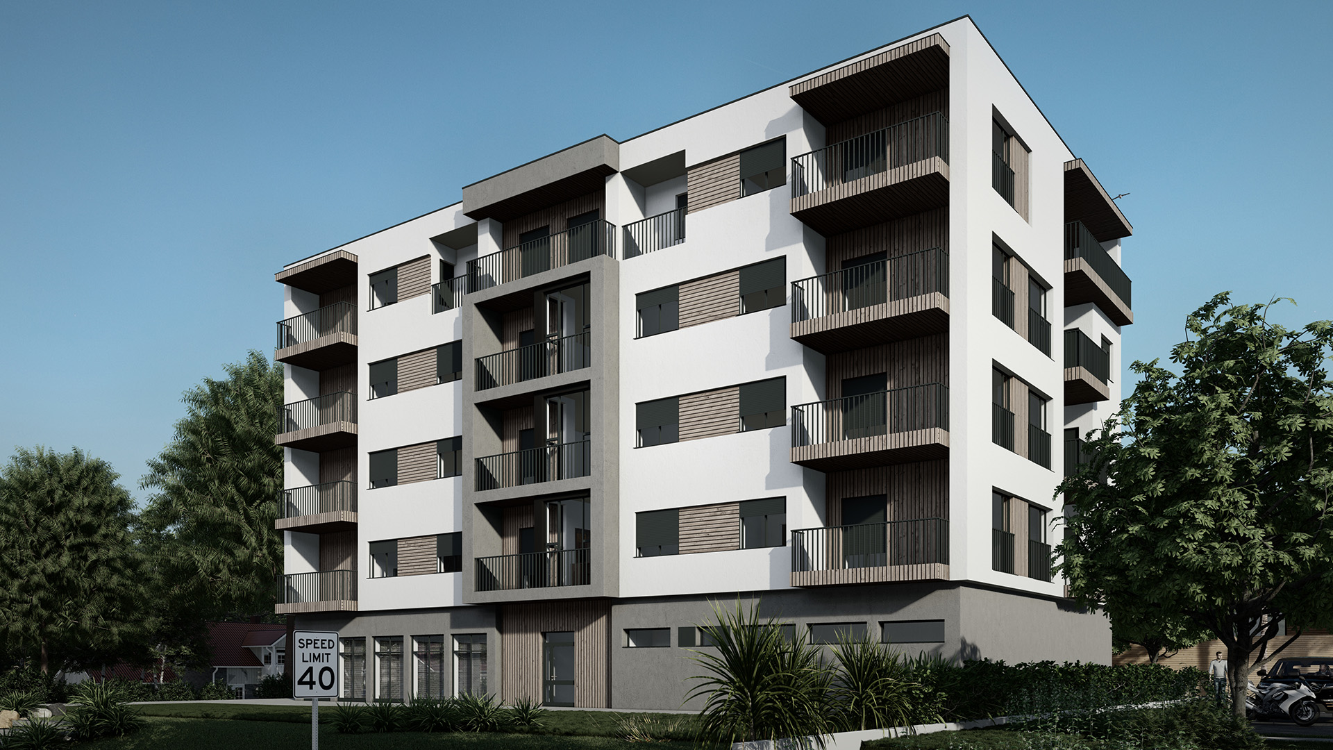 Naziv projekta: Višestambena zgrada Tip građevine: višestambena građevina, stambeno-poslovna zgrada Lokacija: Slatina, Virovitičko-podravska županija, Hrvatska Bruto površina: 1973,60 m2 Godina: 2022. Status projekta: idejno rješenje